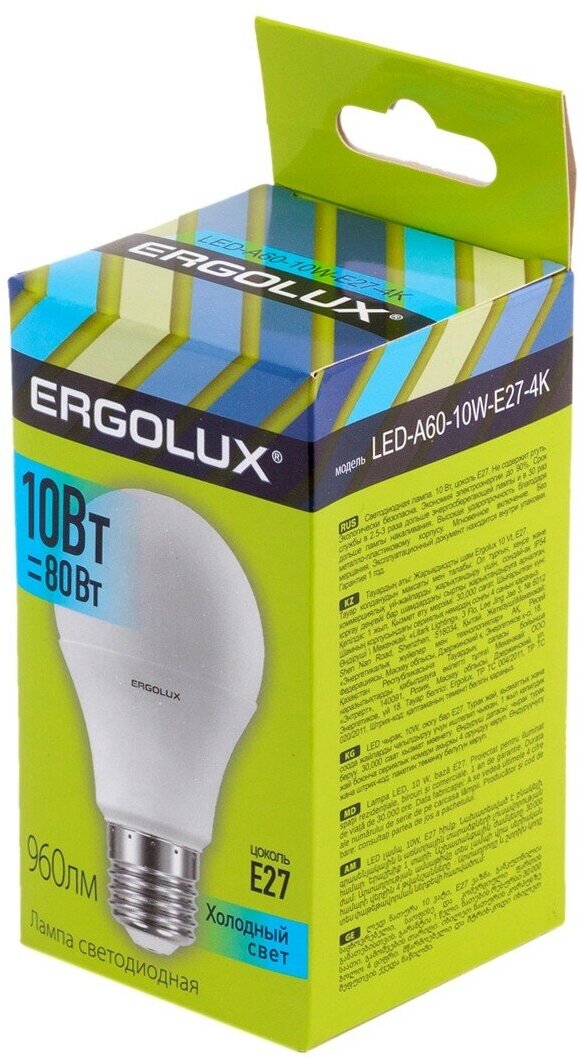 Лампочка ERGOLUX LED-A60-10W-E27-4K 10 Вт, E27, белый