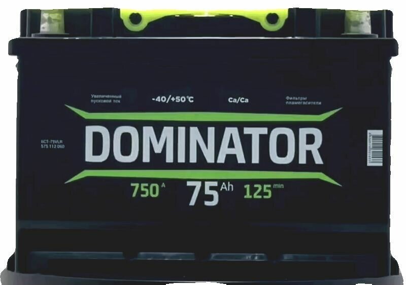 DOMINATOR 575112060 Аккумулятор 6СТ-75VLR 75Ah 750A 276х175х190 полярность 0 клеммы A тип крепления В3/В13 1шт