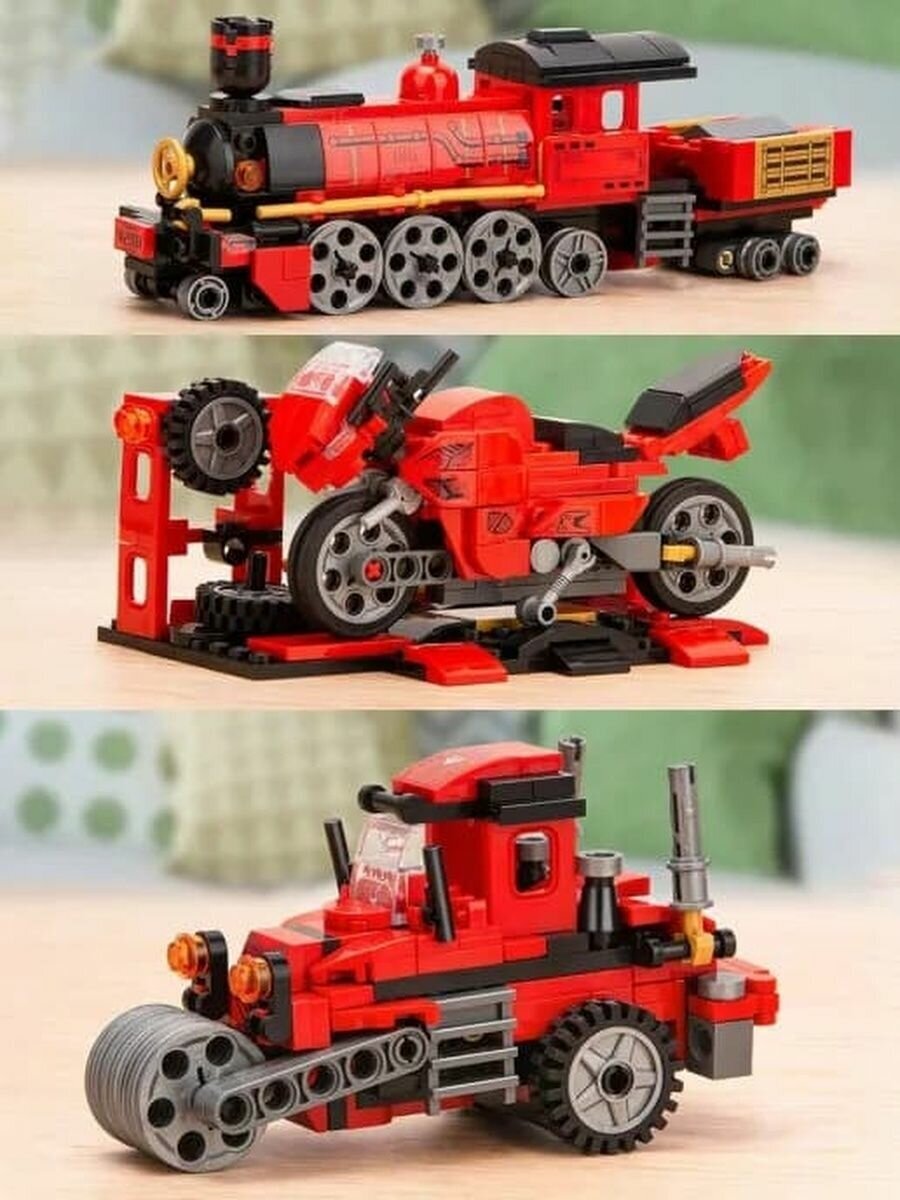 Конструктор 3 в 1 Qman Поезд, мотоцикл, каток 42101