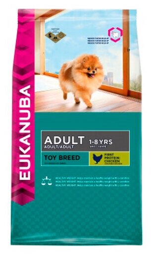Корм сухой для собак Eukanuba Adult Toy Breed для взрослых собак миниатюрных пород от 1 до 8 лет, курица 1,5 кг