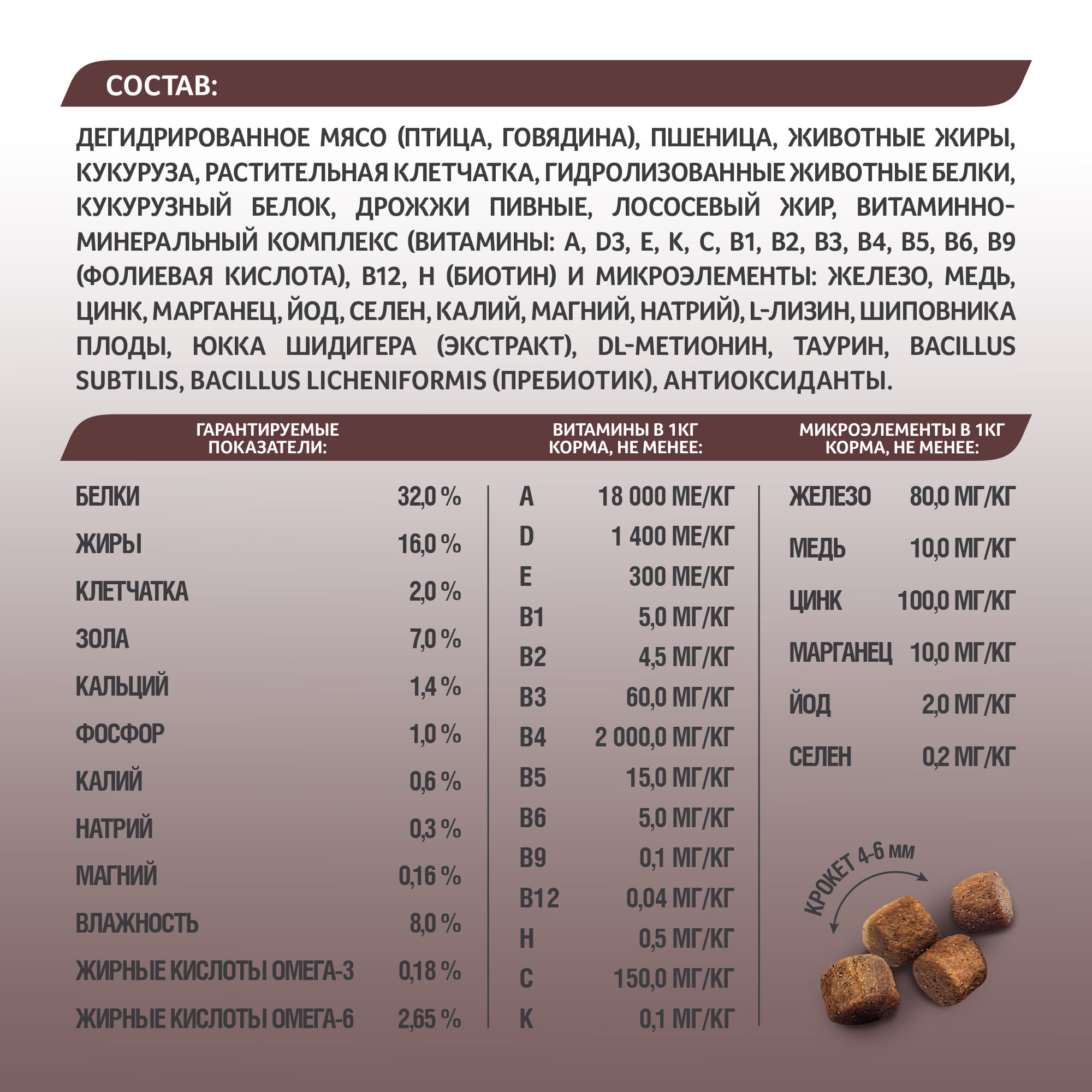 | Ингредиенты | мясо индейки, мясо курицы, пшеница, кукуруза, жиры, клетчатка |