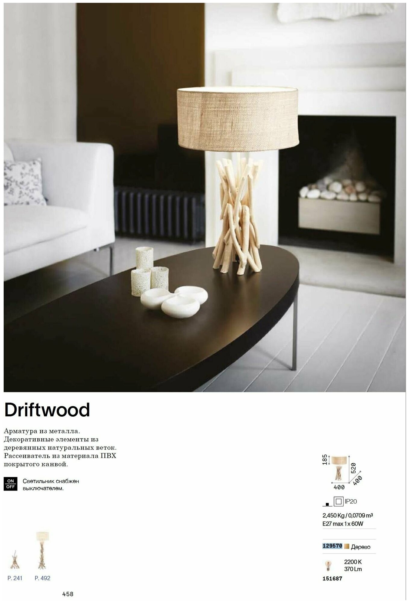 Настольная лампа Ideal Lux Driftwood TL1 макс.60Вт Е27 IP20 230В Дерево Металл/ПВХ
