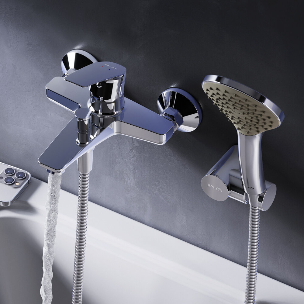 Am.Pm F90A15000 Gem, смеситель д/ванны/душа, душ.набор, хром, шт.