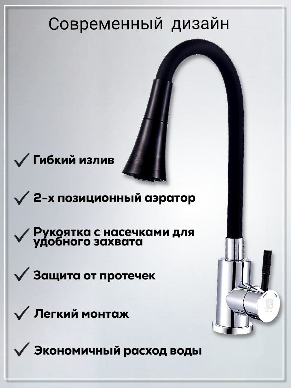 Смеситель ARGO SOLID 35-12 black для кухни двухпозиционный пластичный излив хром/черный