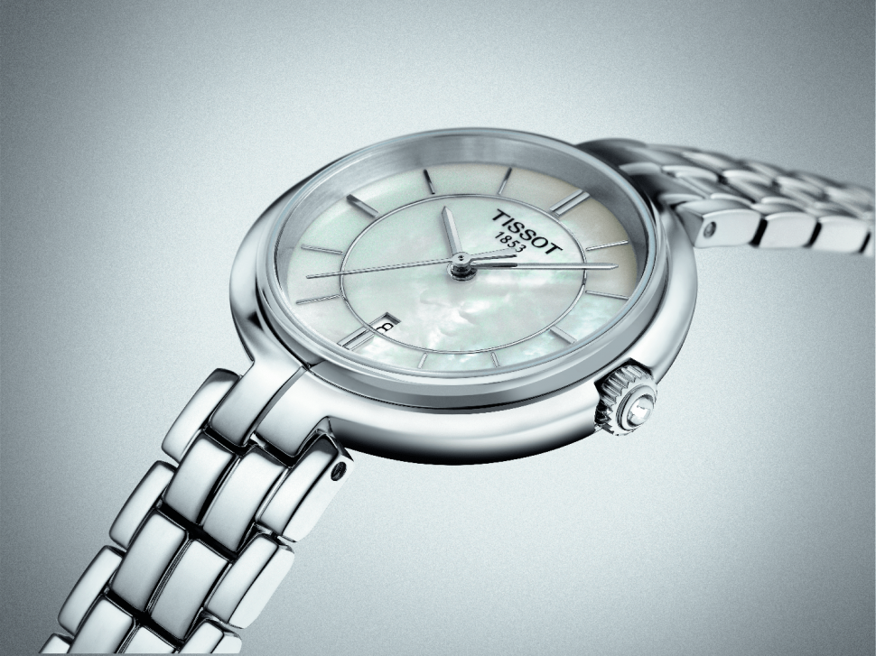 Наручные часы Швейцарские кварцевые часы Tissot Flamingo T094.210.11.111.00 на стальном браслете, с водозащитой 5 бар и международной гарантией от производителя