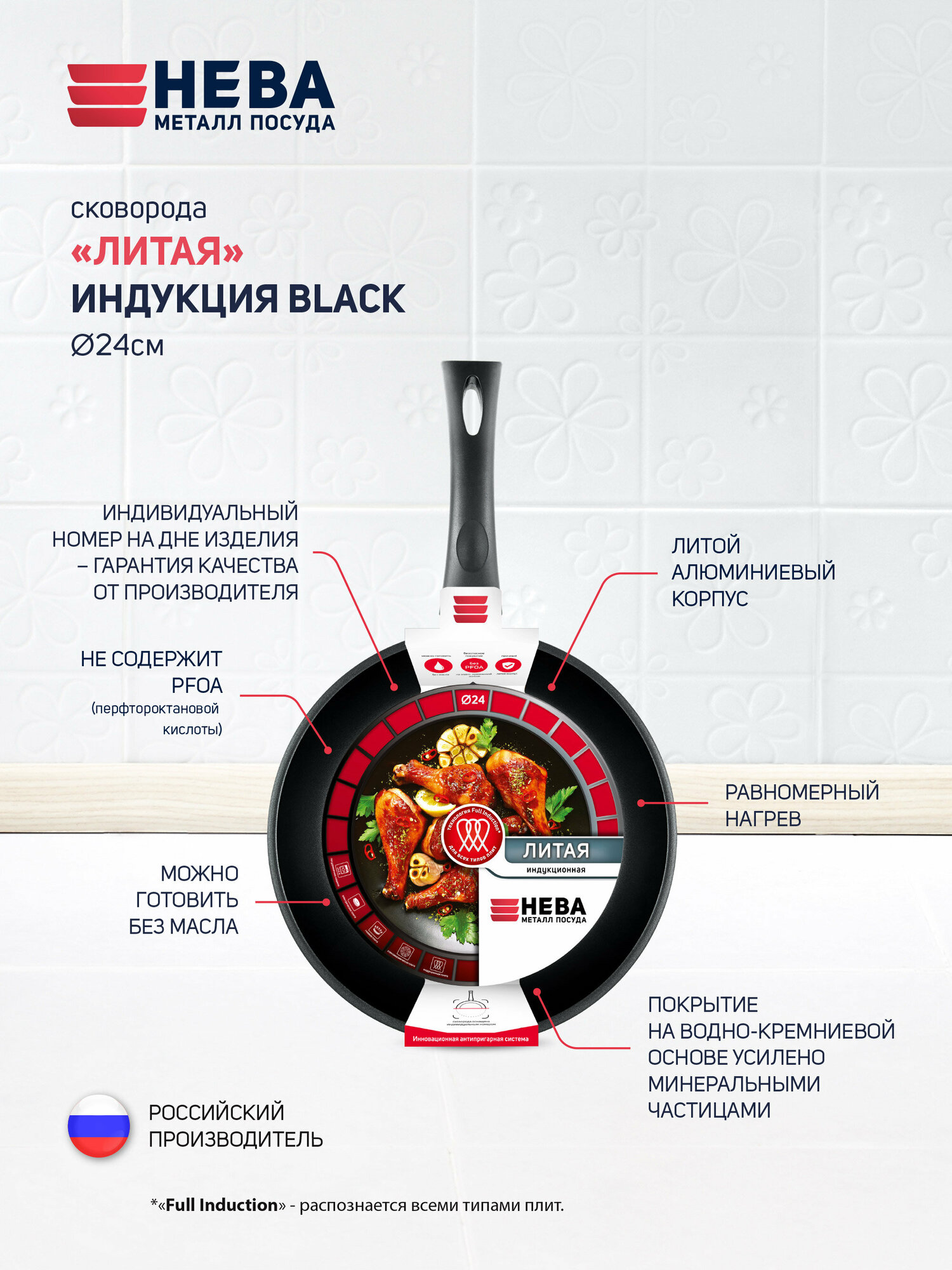 Сковородка Нева металл посуда L08124i Сковорода 24 литая Индукция н/р