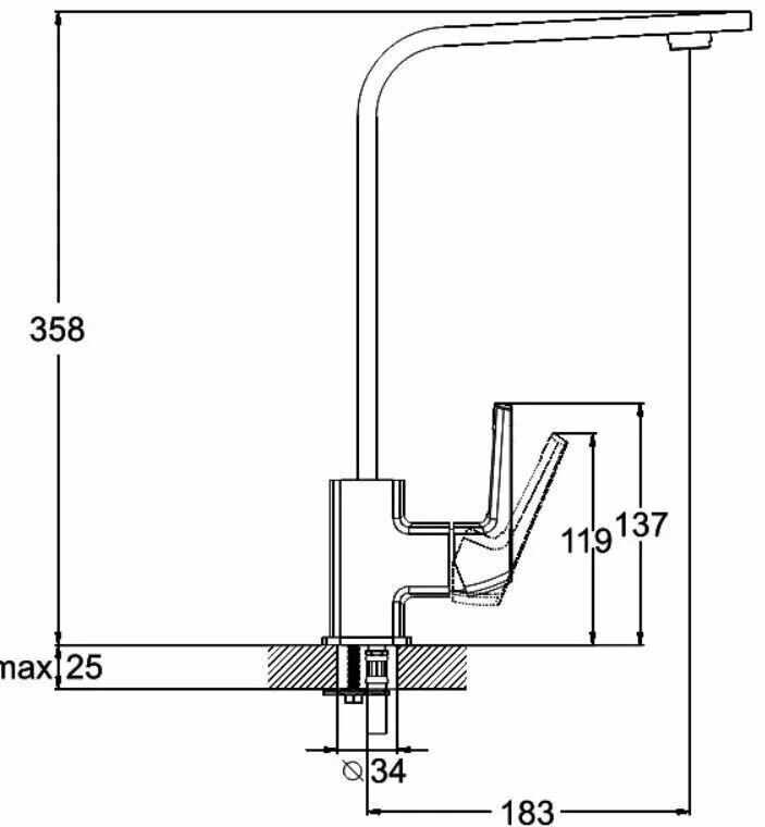 смеситель G.Lauf для кух. мойки с пов. изливом, ø35, шпилька LEF4-B232