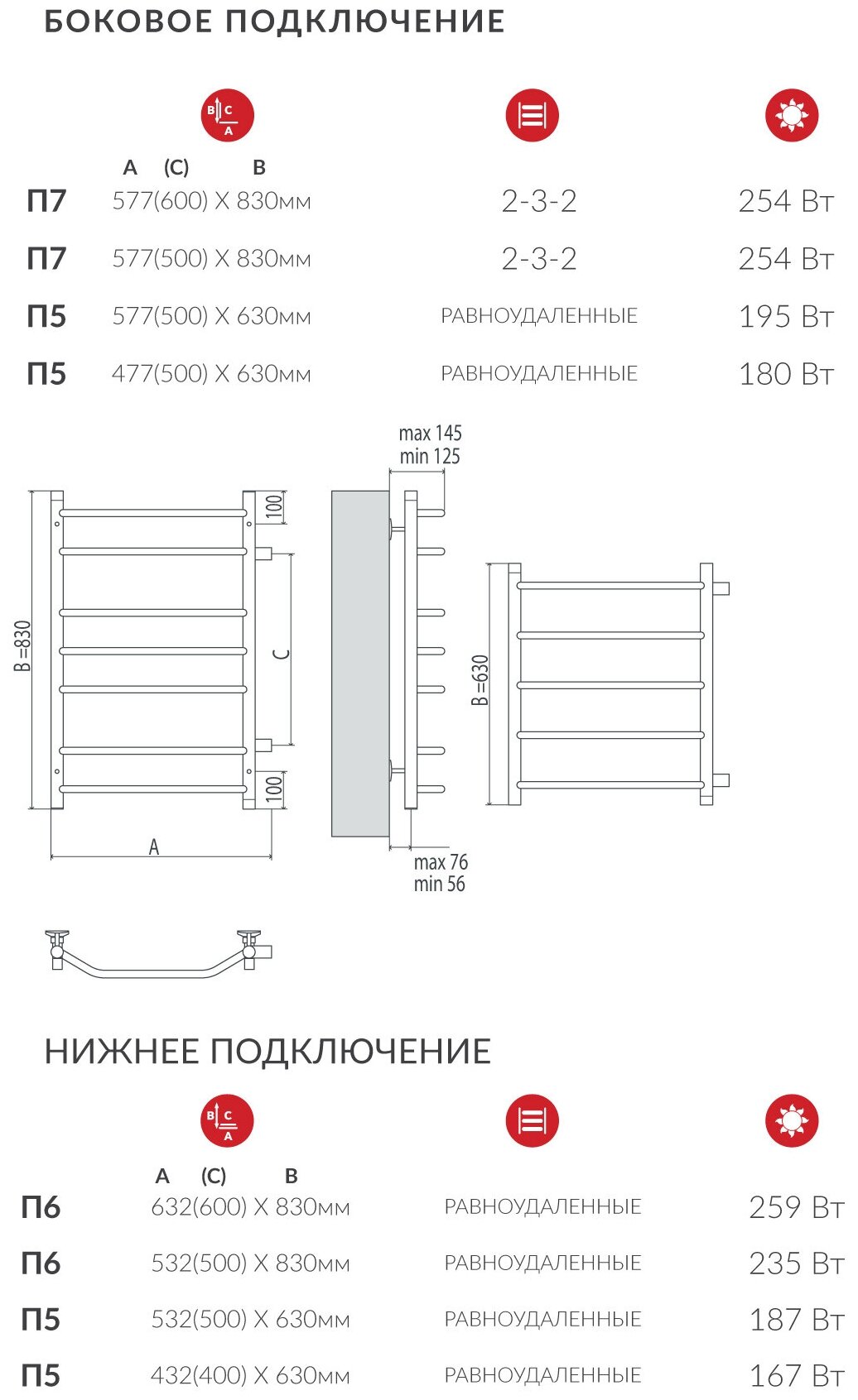 Полотенцесушитель Полотенцесушитель Terminus Виктория П6 500*830 E L электрический