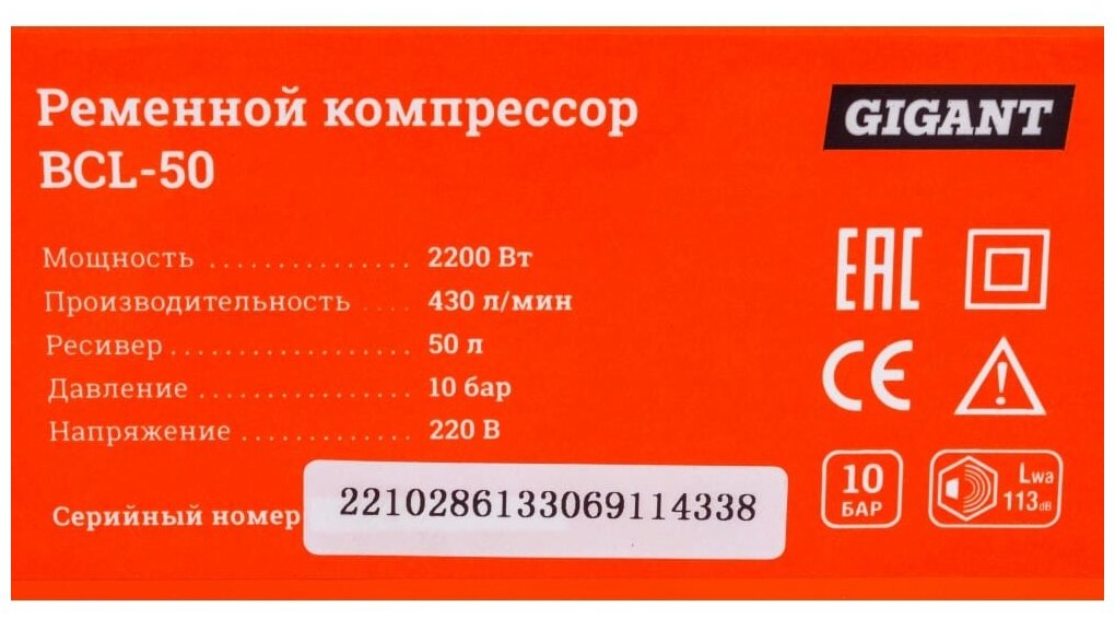 Компрессоры Компрессор Gigant BCL-50 2.2кВт