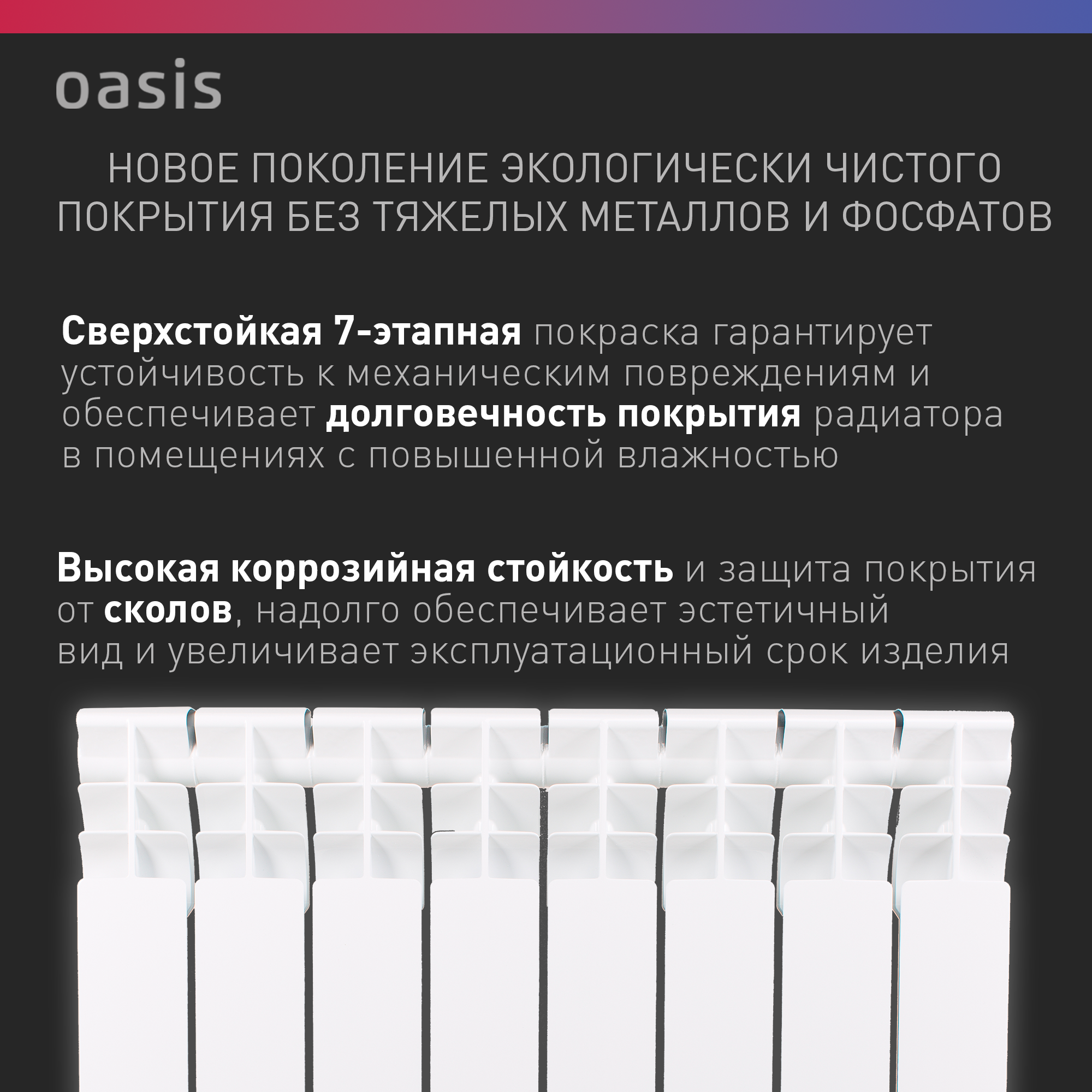 Биметаллический радиатор Oasis ECO 500/80 7 секций, 1064 Вт, Россия