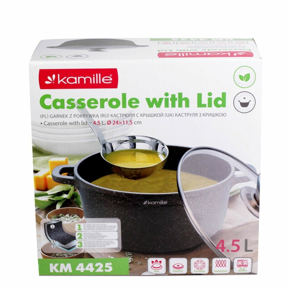 Кастрюля 4,5 л. из литого алюминия с покрытием серый мрамор Kamille КМ-4425 (24х11,5 см.) (4425 / серый)