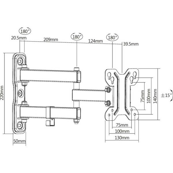 Кронштейн Ultramounts UM896 для телевизора, настенный, 13-27", до 30 кг, выдвижной, наклонный, поворотный, чёрный