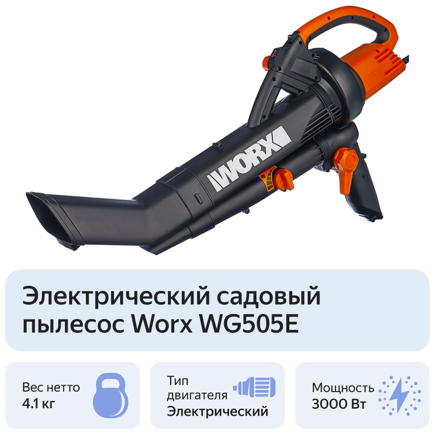 Электрический садовый пылесос Worx WG505E, 3000 Вт