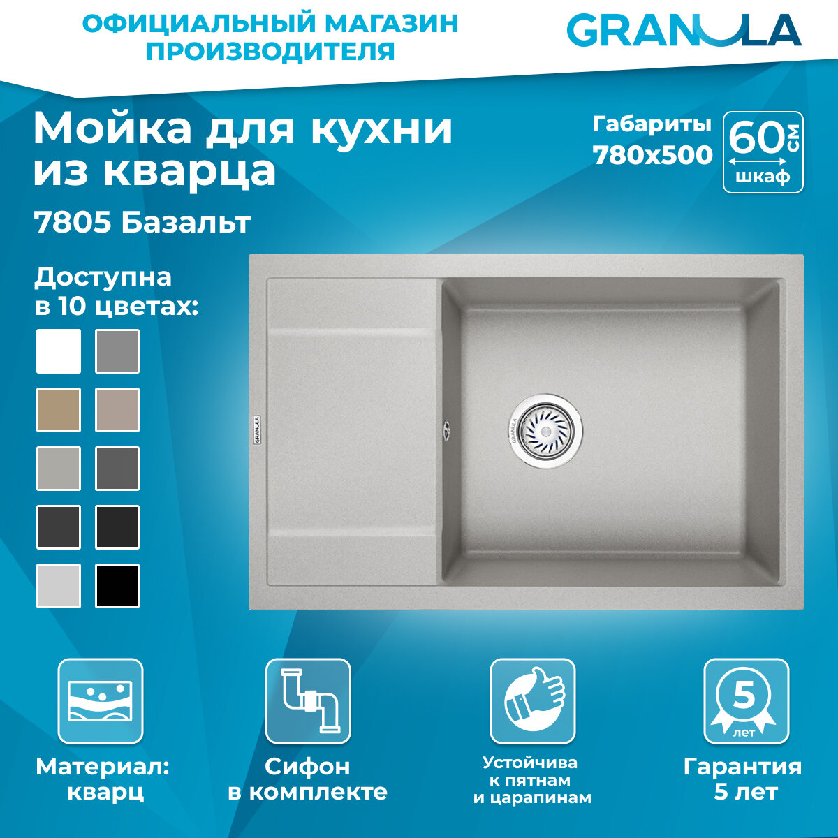 Мойка из композитного материала Granula GR-7805 арктик 11 700 ₽ Подробнее