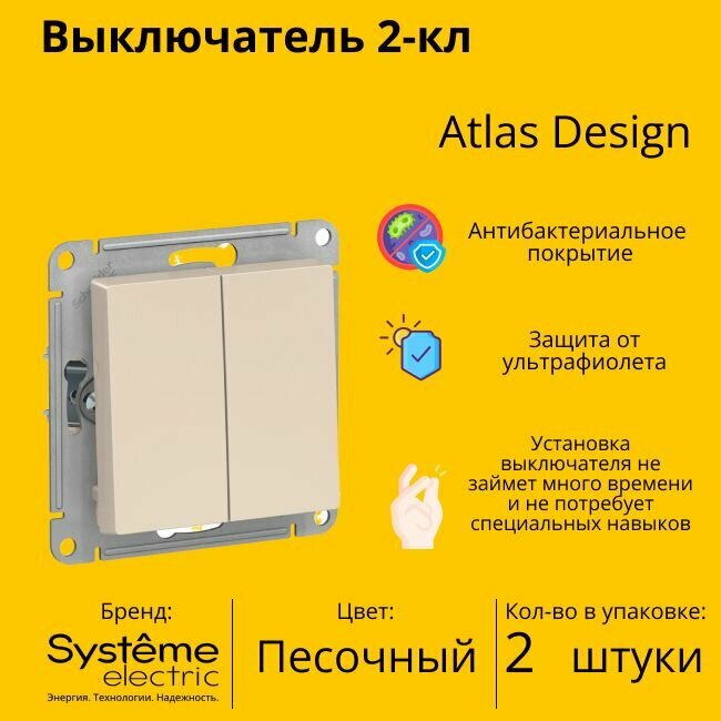 Выключатели Выключатель электрический Schneider Electric (Systeme Electric) Atlas Design 2-клавишный, 10А, 10 AX, Песочный ATN001251 - 2 шт.