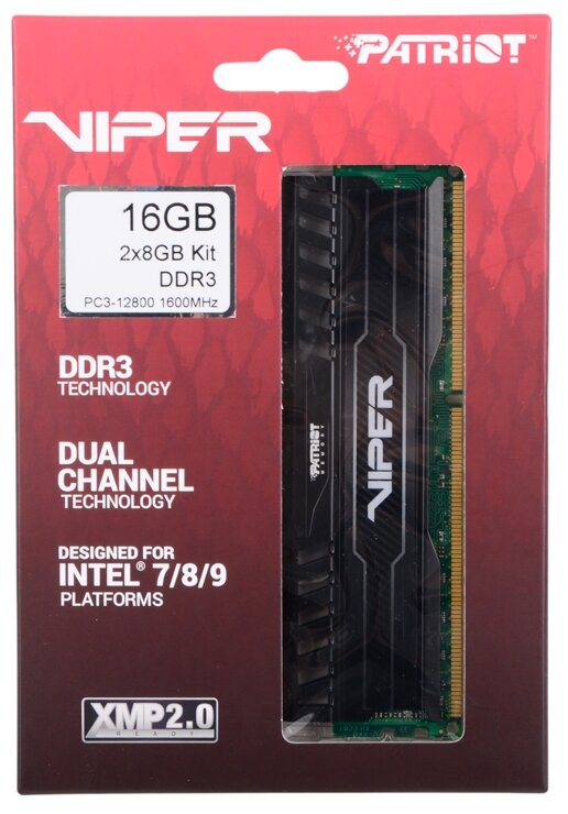 Оперативная память Patriot Memory VIPER 3 16 ГБ (8 ГБ x 2 шт.) DDR3 1600 МГц DIMM CL9 PV316G160C9K