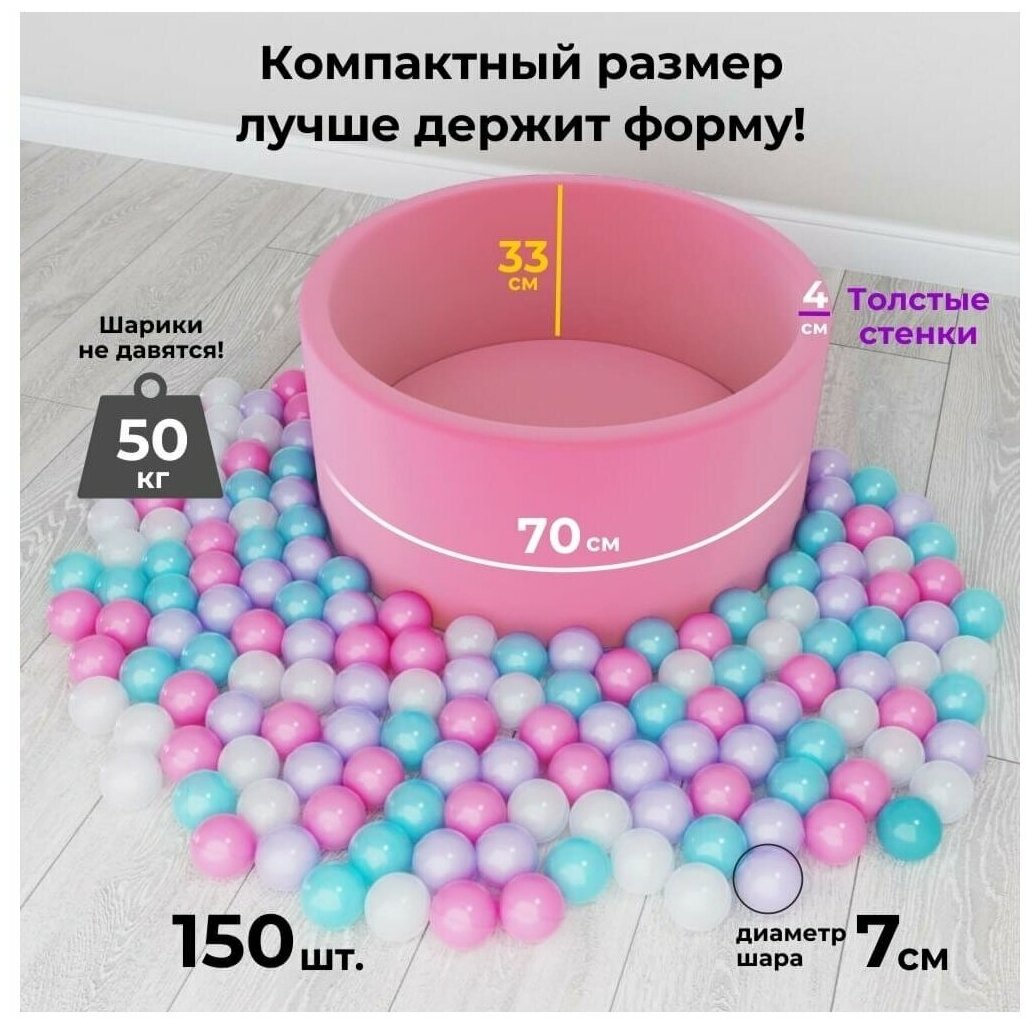 Манеж Бассейн для шариков / Сухой бассейн Romana Airpool Easy розовый + 150 розовых шариков