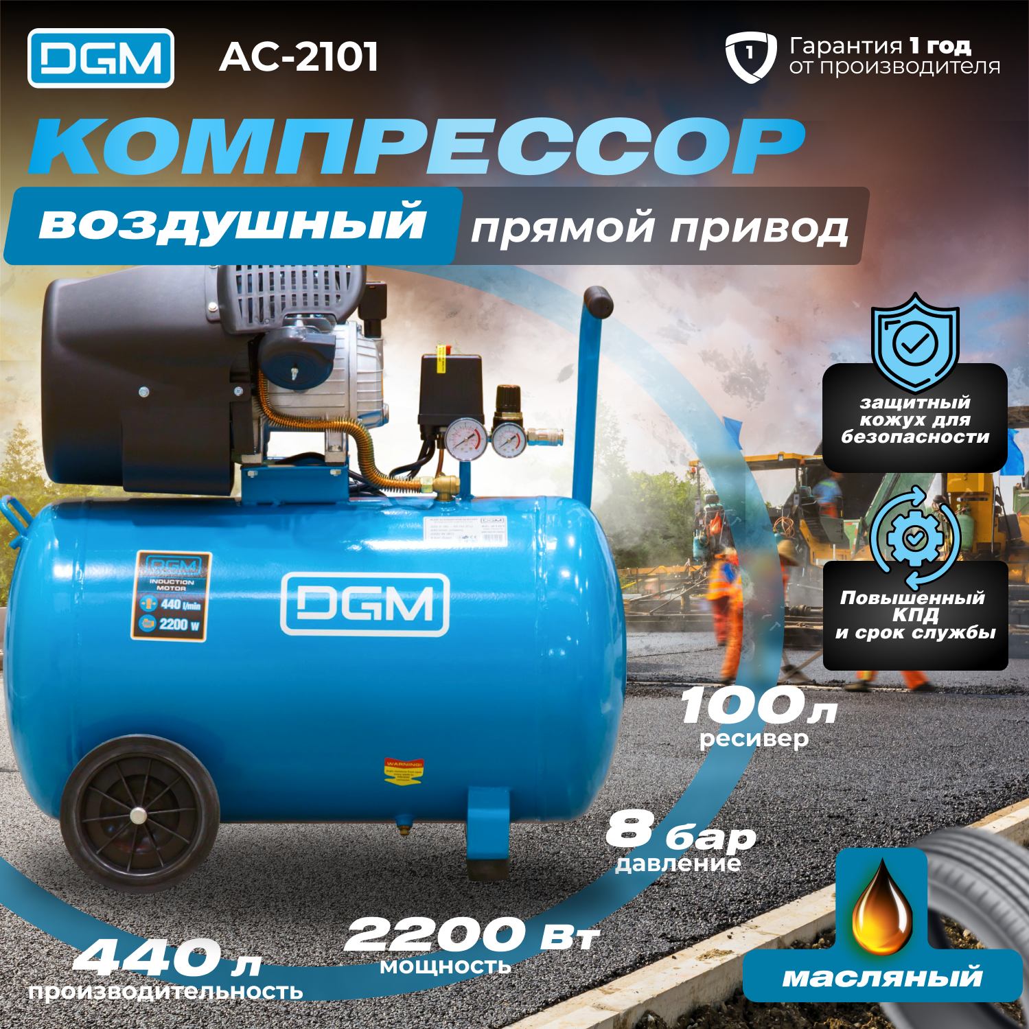 Компрессор воздушный масляный DGM AC-2101 (440 л/мин, 8 атм, коаксиальный, ресив. 100 л, 220 В, 2.20 кВт)