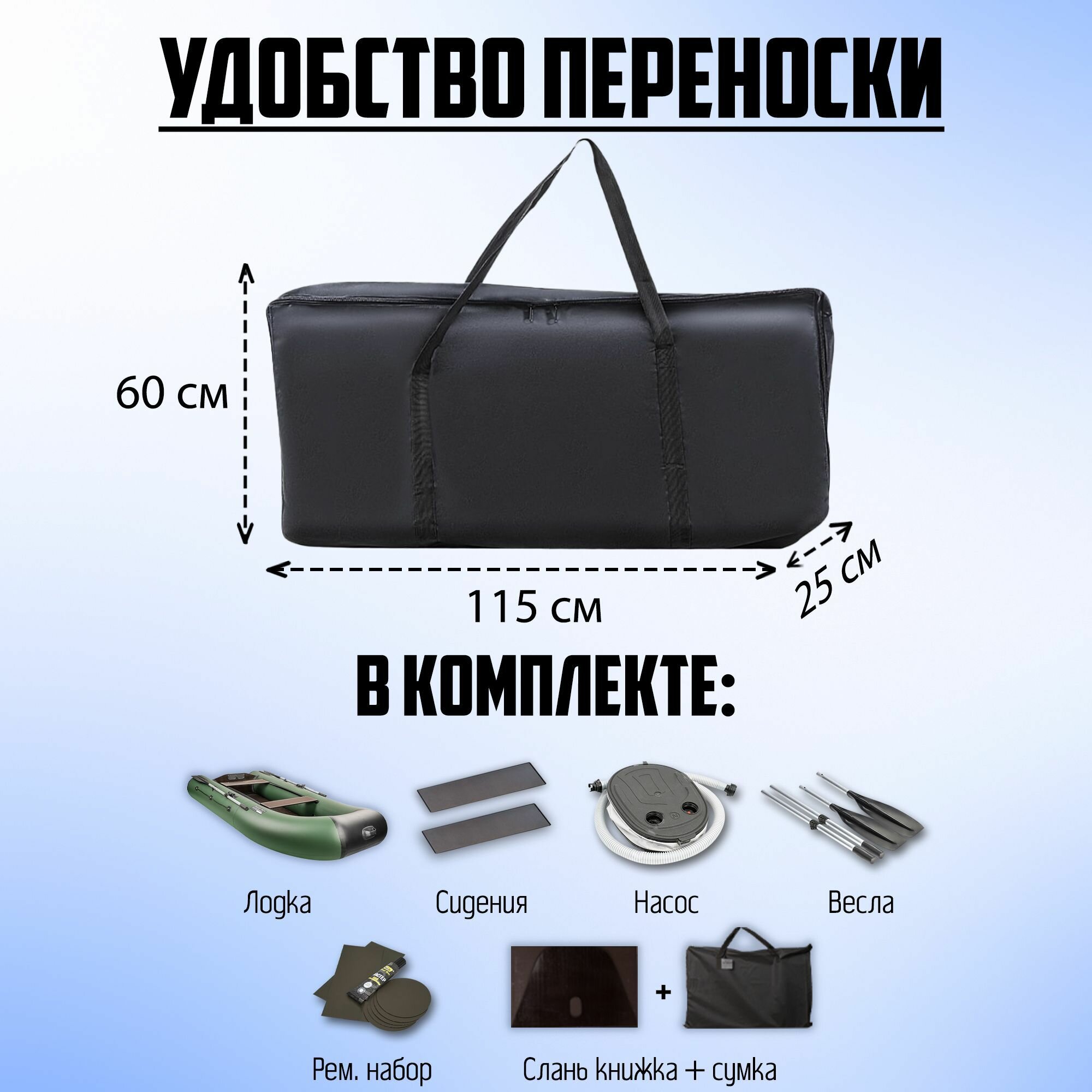 | Дополнительно | ручки для переноски / поворотные уключины / леерный трос |