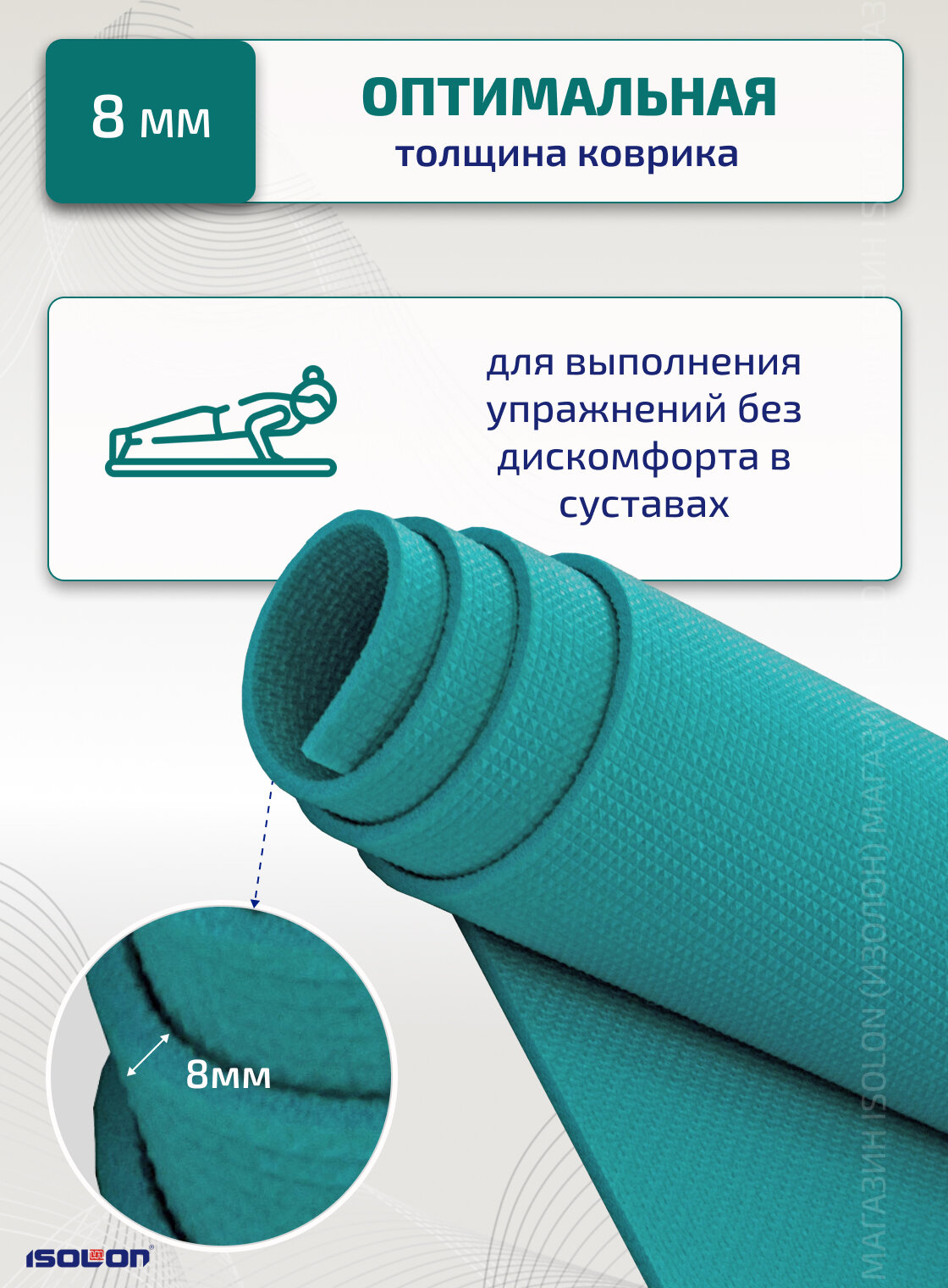 Туристические коврики Коврик спортивный и туристический для похода и отдыха ISOLON Optima Light 8, 180х60 см бирюзовый