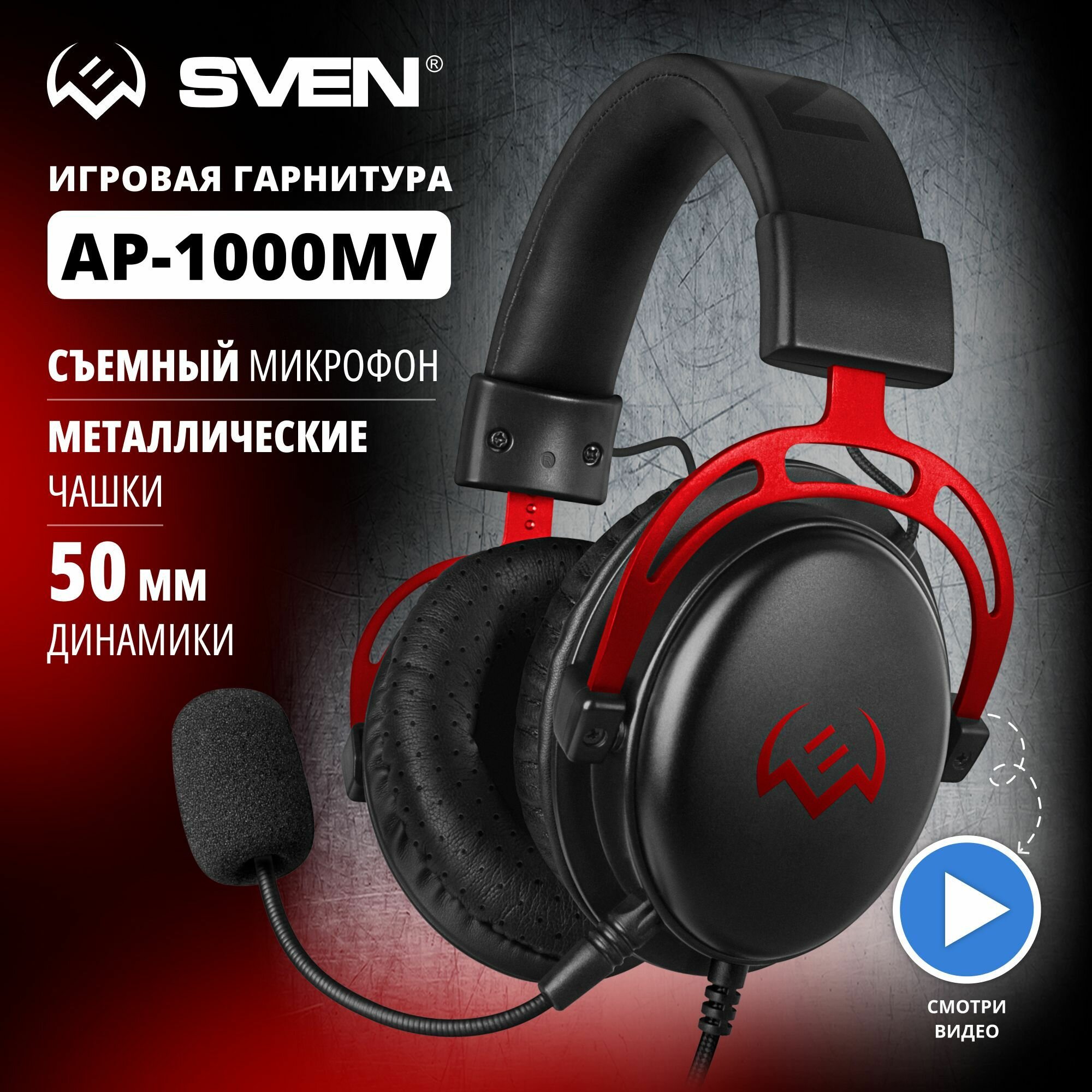 SVEN AP-G1000MV Игровые наушники с микрофоном черно-красные (mini jack 3,5 мм (4 pin), 50 мм)