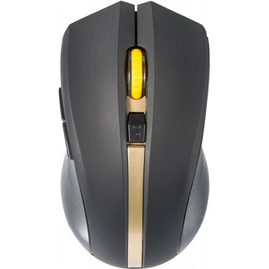 Мышь OKLICK 495MW черный/золотистый, оптическая (1600dpi), беспроводная, USB (6 кнопок)
