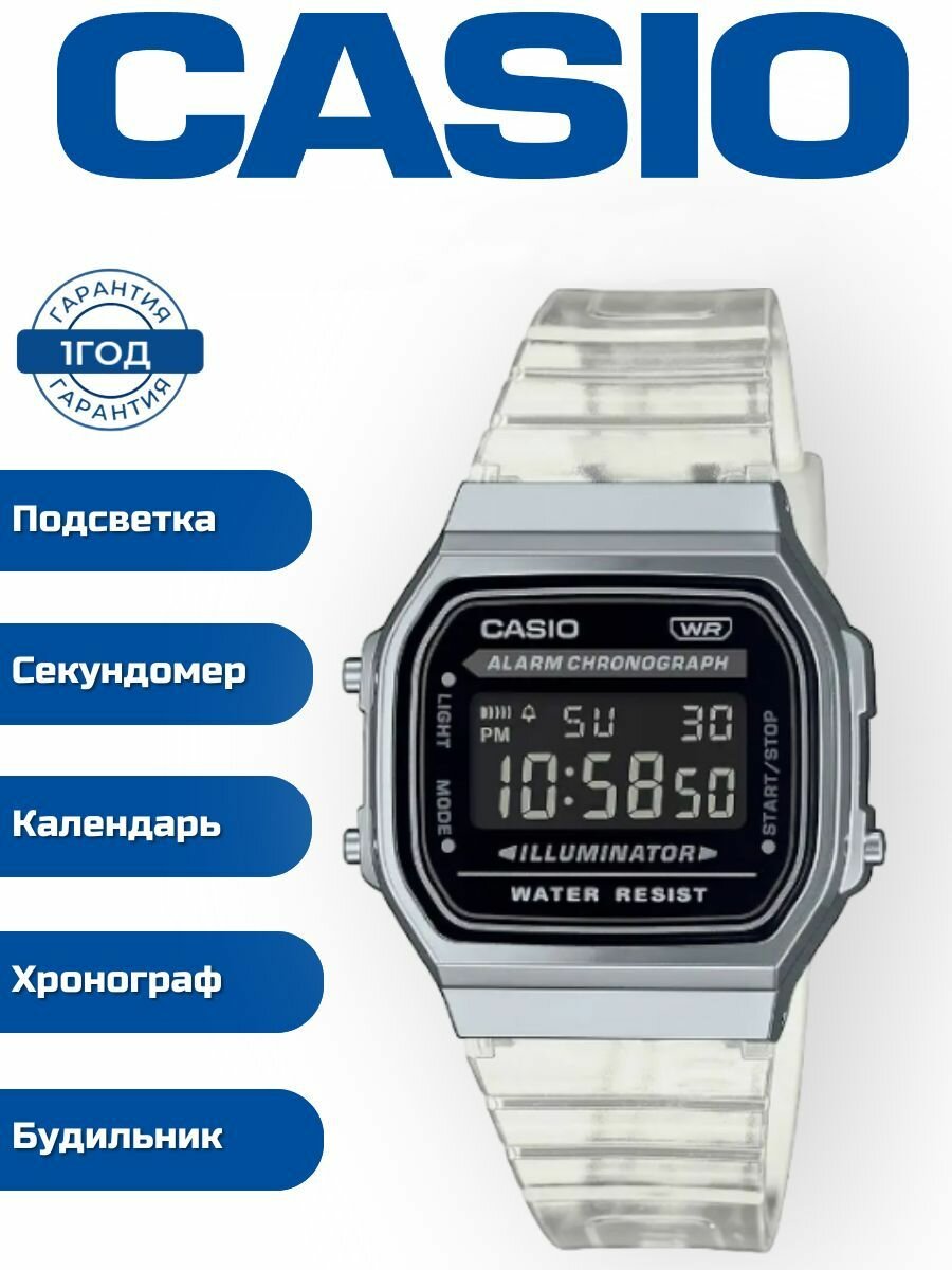 A168WA-8A Casio наручные часы кварцевые WR30 (3 атм) мужские, женские секундомер будильник отображение числа, отображение дня недели, отображение месяца подсветка дисплея акриловое стекло 5 200 ₽ Подробнее