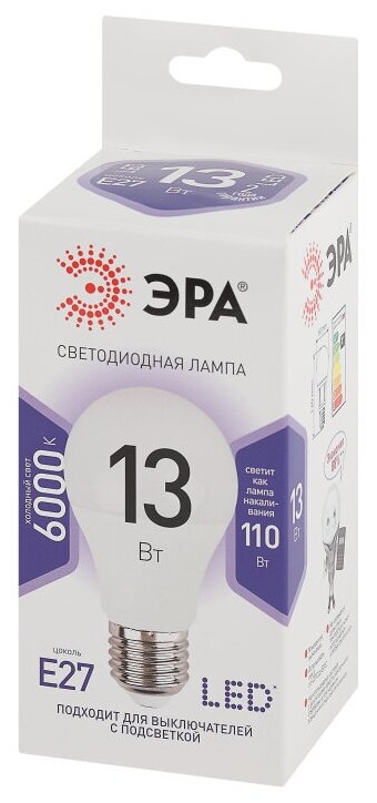 Лампа светодиодная ЭРА Б0031395, E27, A60, 13 Вт, 6000 К