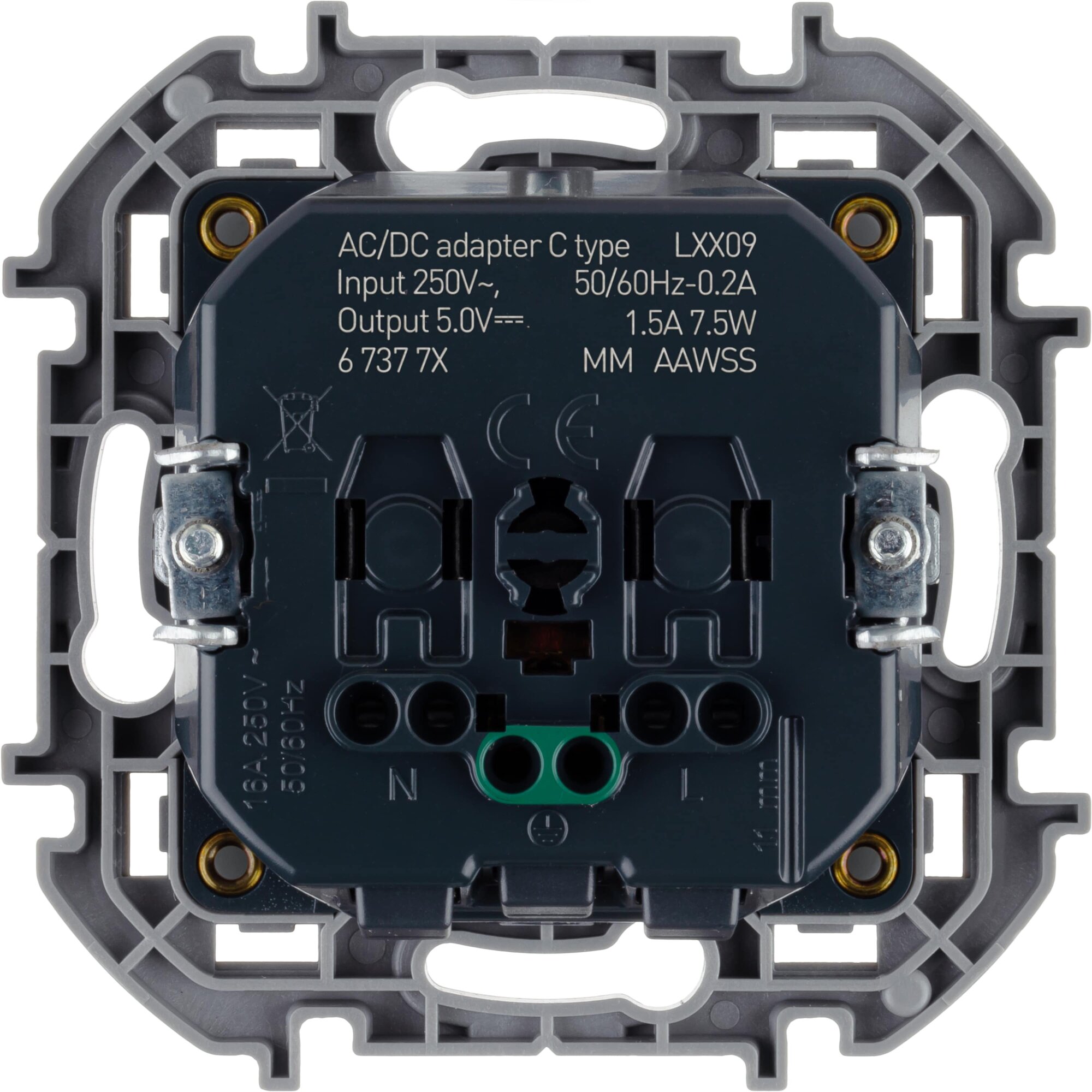 Розетка Розетка 2К+З немецкий стандарт 16А 250В со встроенным зарядным устройством USB C 1.5А 5В INSPIRIA алюминий , LEGRAND 673772 (1 шт.)