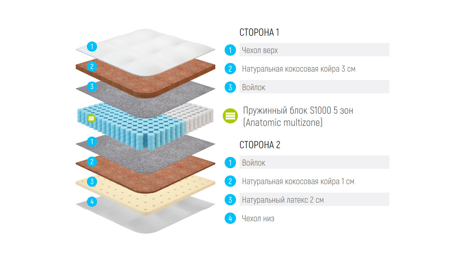 | Наполнитель | нетканое волокно, пена (Memory Foam, Elastic Foam), кокосовая койра |
