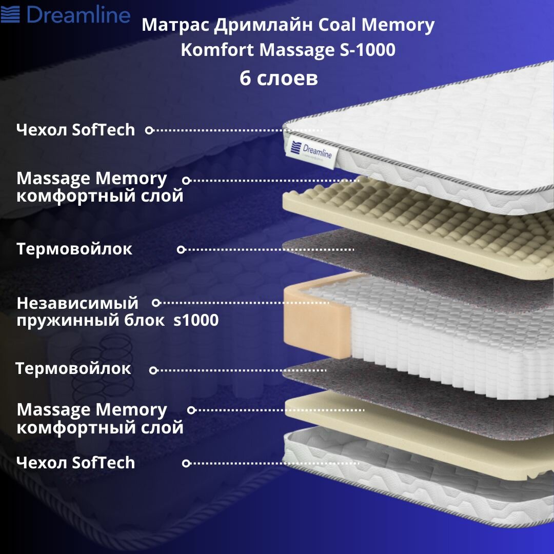 Матрасы Матрас Дримлайн Coal Memory Komfort Massage S-1000
