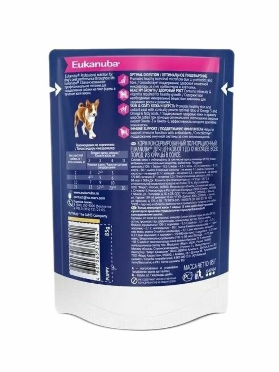 Влажный корм для щенков Eukanuba, с курицей в соусе, 85 гр, 24 шт