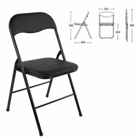 Стул складной для дома и офиса BRABIX "Golf CF-007", черный каркас, кожзам черный, 531565 Комплект : 1 шт