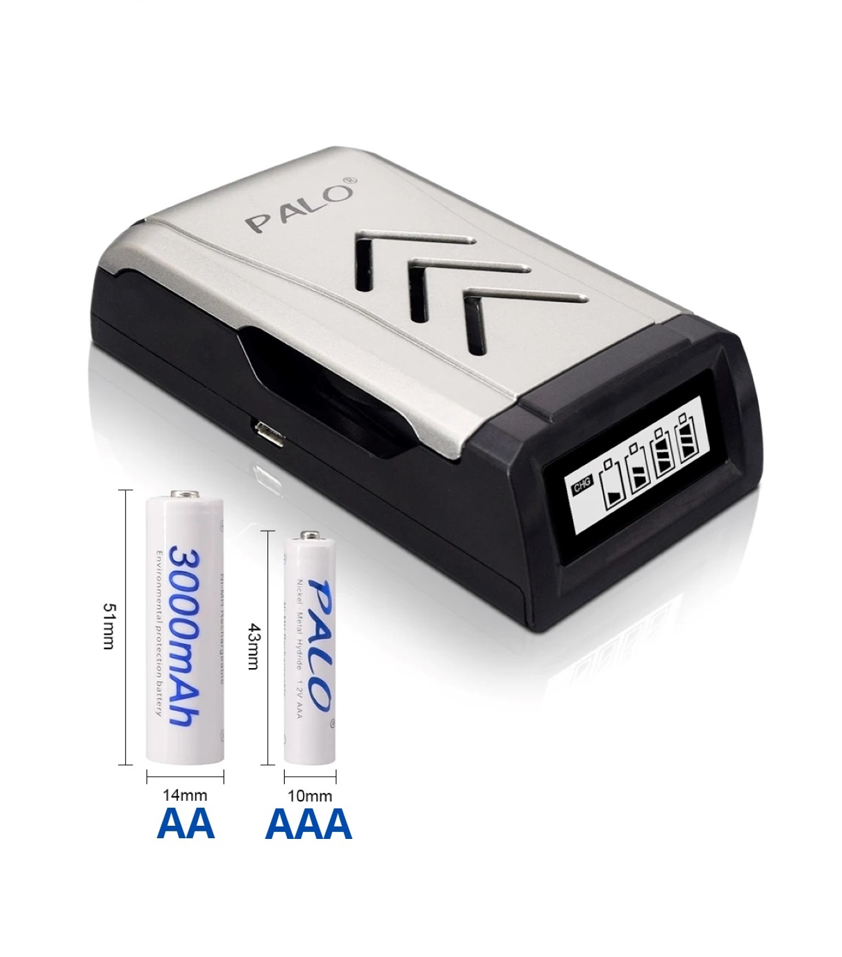 Зарядки аккумуляторных батареек Универсальное USB Зарядное устройство с дисплеем для аккумуляторных батареек типа AA, AAA NI-MH, NI-CD