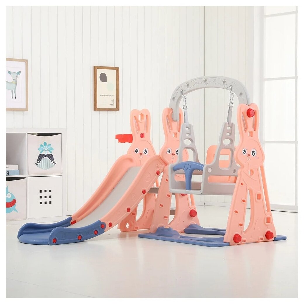 Горка детская с качелями для дома и улицы Perfetto sport PS-042-O "Зайчонок" с баскетбольным кольцом, игровой комплекс 2 в 1, оранжевый