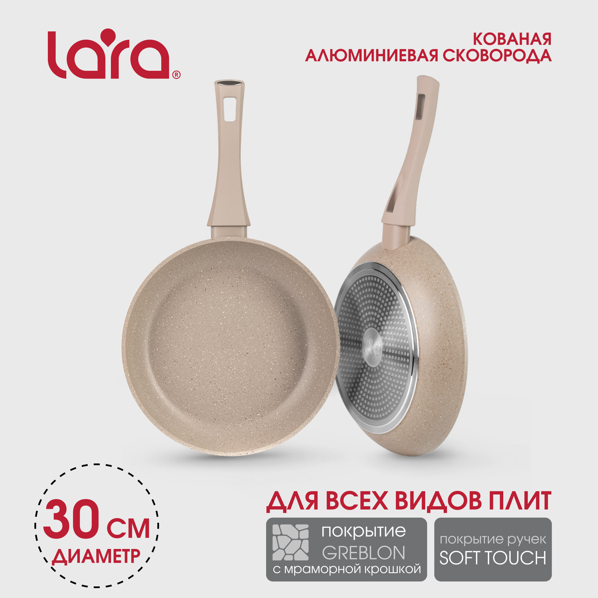Сковорода LARA Carmeliya 30 бежевая кованный алюминий покрытие greblon диаметр 30 см