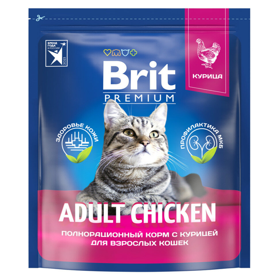 Корм для кошек Brit Premium Cat Adult для взрослых кошек Курица, 2 кг.
