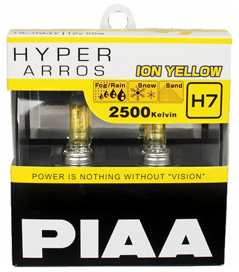 Лампы галогенные hyper arros ion yellow (h7) 2500k 55w (2 шт) для сложных погодных условий, piaa, he-993y-h7