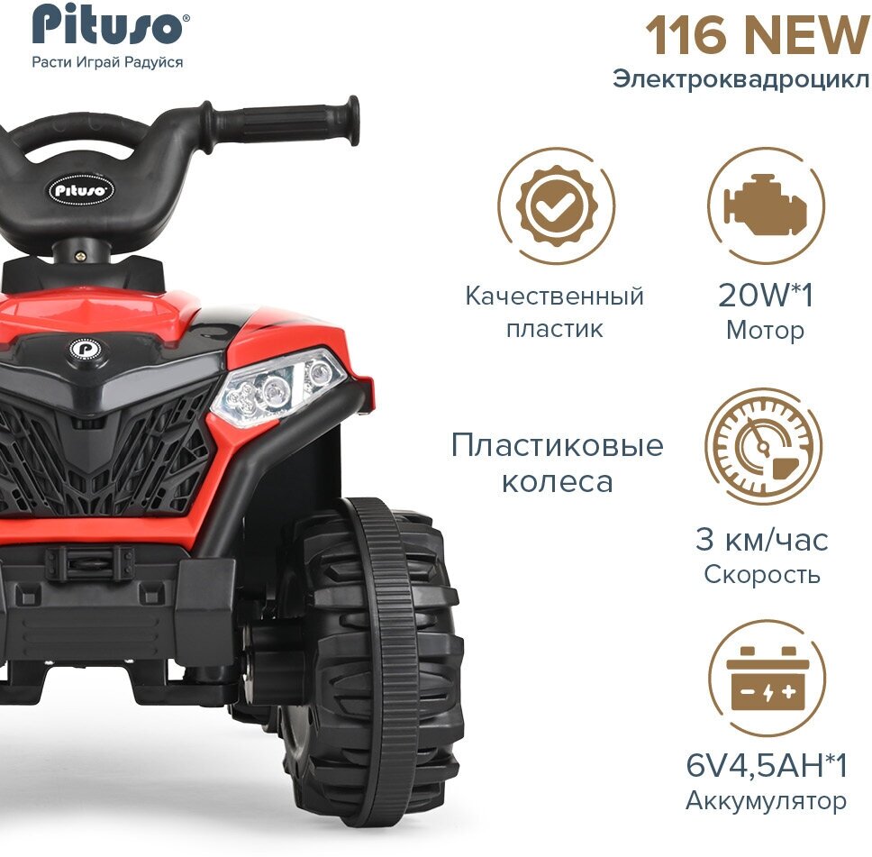 Электромобиль детский, квадроцикл Pituso 116-NEW, батарея 6V/4.5Ah, мотор 20W*1, красный машина для детей на аккумуляторе, свет, звук