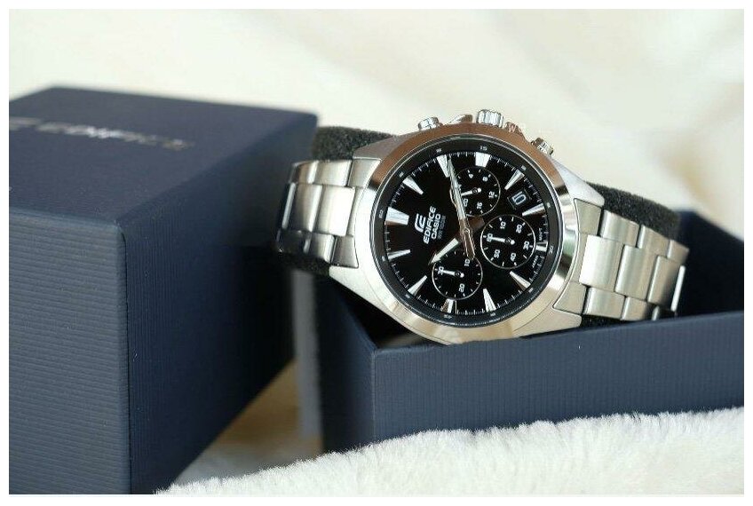 Японские кварцевые часы Casio Edifice EFV-630D-1A на стальном браслете, с водозащитой 10 бар и международной гарантией от производителя