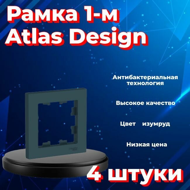 Розетки Рамка одинарная для розеток и выключателей Schneider Electric (Systeme Electric) Atlas Design изумруд ATN000801 - 4 шт.
