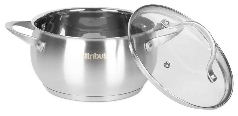 Кастрюля attribute eclipse 2,5л 18см нерж.сталь стеклянная крышка индукция