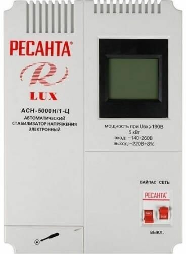 Стабилизатор напряжения однофазный РЕСАНТА LUX АСН-5000Н/1-Ц белый 5000 Вт