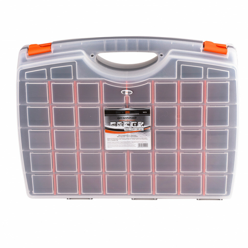 Лучшие цены. Двухсторонний органайзер из пластика Stels 90710 размером 425 х 330 х 85 мм пригодится в хозяйстве и мастерской для хранения крепежных элементов, принадлежностей для рукоделия, снастей и т.д. Он обеспечивает быстрый доступ к предметам, не допуская их перемешивания и утери. Преимущества Корпус из высококачественного полипропилена гарантирует сохранность вещей, т.к. не допускает попадания влаги и пыли. Магазины в вашем городе.