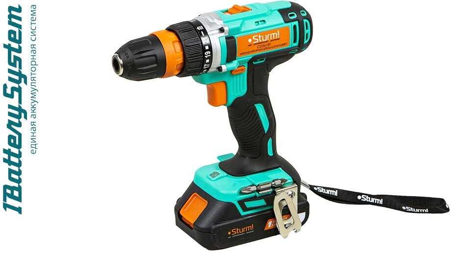 Дрель / шуруповерт Sturm! Cd3618t Дрель аккумуляторная Sturm! 18 В, 1BatterySystem, 2 акк. 2,0Ач,съемный патрон, кейс