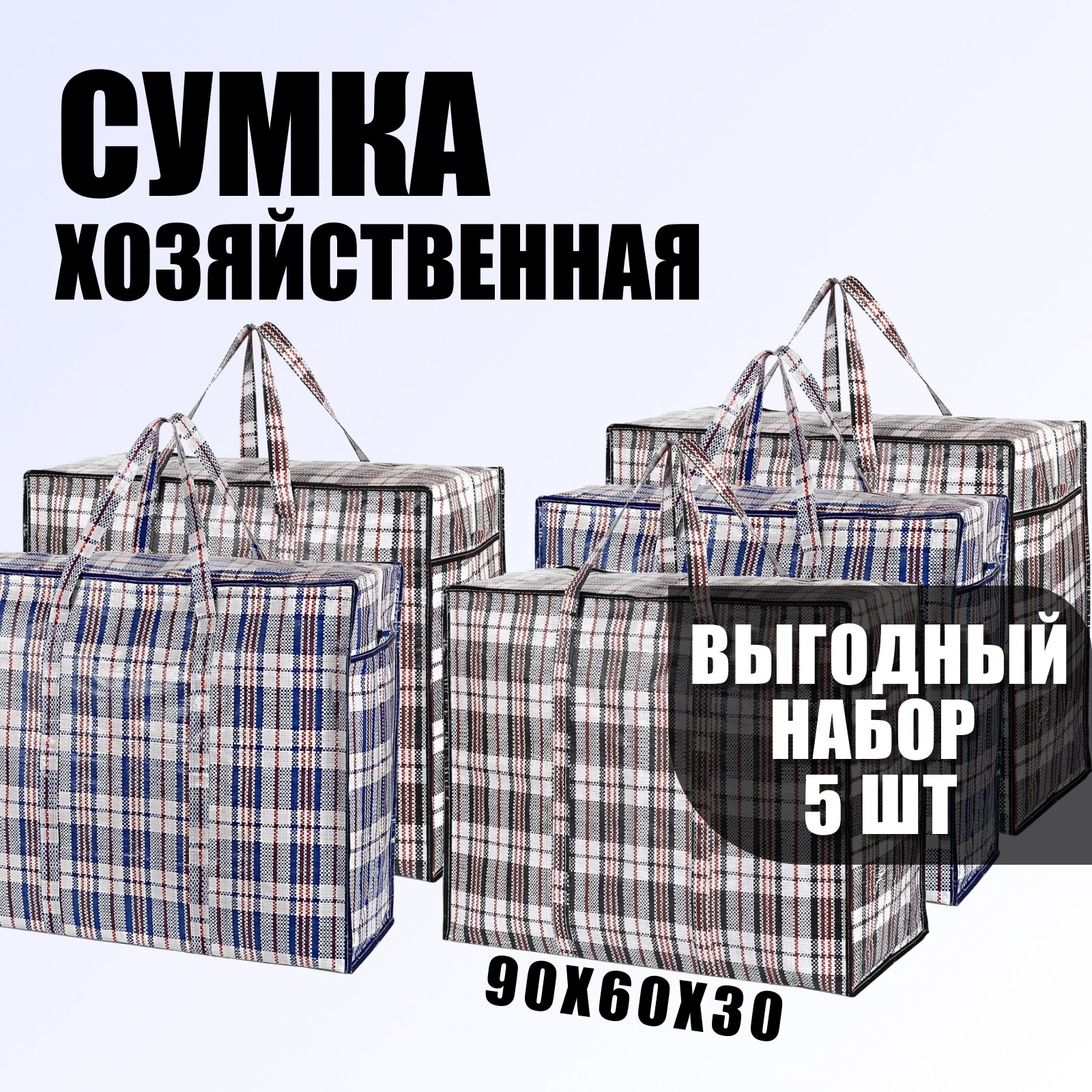 Сумки дорожные Сумка хозяйственная большая "Сумка-баул складная клетчатая" Сумка базарная, мешок 90x60x30 см. / Сумки для переезда набор 5 шт.
