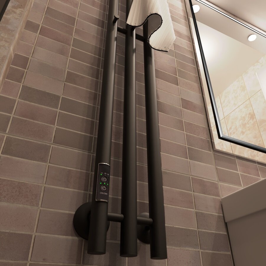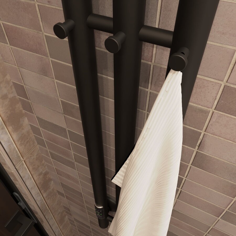 Полотенцесушитель электрический Маргроид 1200мм 150мм черный матовый скрытый монтаж/шнур с вилкой, с таймером, 3 крючка, правое подключение