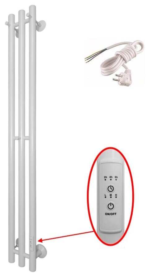 Полотенцесушитель Inaro Р120*6*12 профильный (18 ", СНШ, Белый RAL 9016 (мат), 2 секции по 3 вставки, Под скрытый монтаж. С таймером Ferrum, 3 крючка, Кабель с вилкой белый 90 см; 3 крючка по чертежу, Правое подкл.)