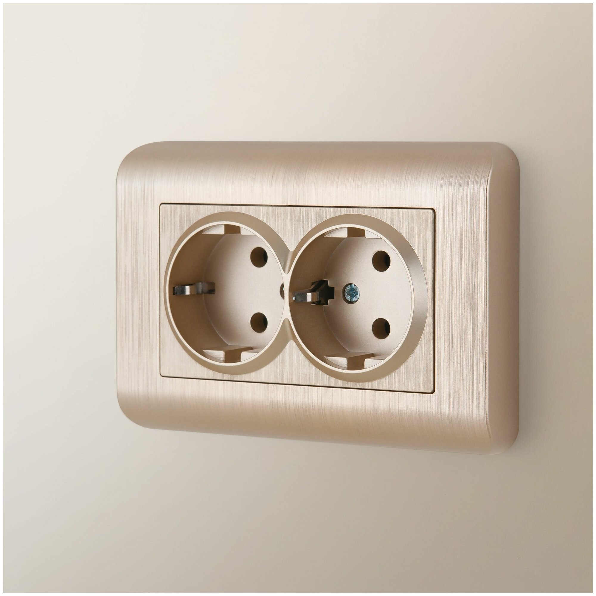 Розетки Розетка Werkel (a051432) двойная скрытая установка шампань рифленая с заземлением IP20