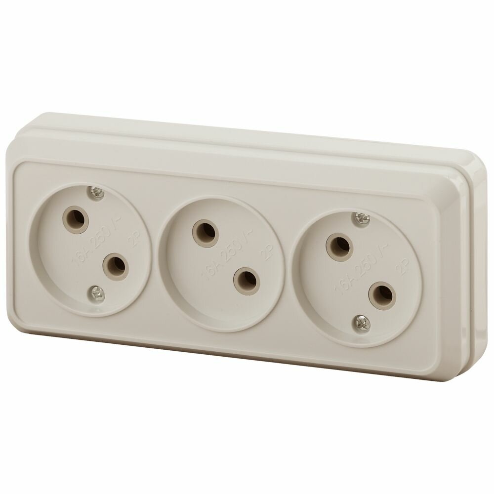 Розетка Розетка Intro Quadro 2-205-02 без заземления трехместная 3х2P 16А-250В IP20 открытой установки слоновая кость